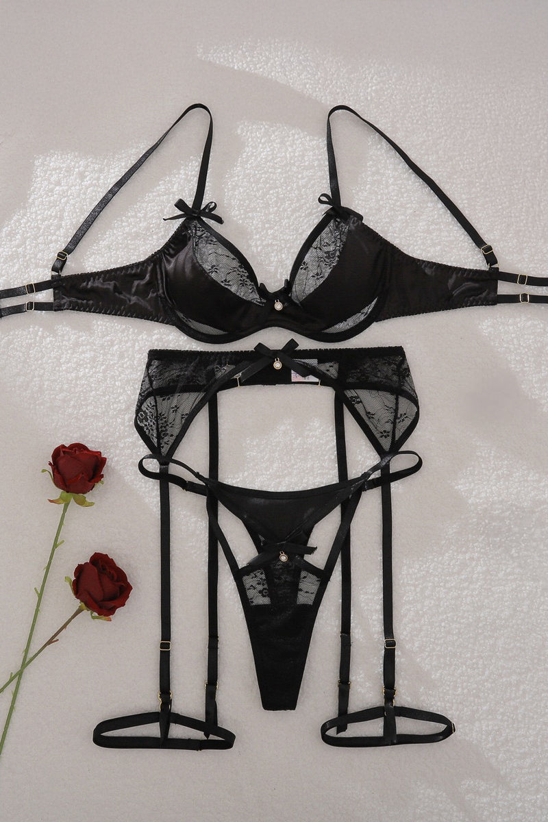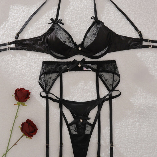 •Four-piece Valentine’s-ready lingerie set